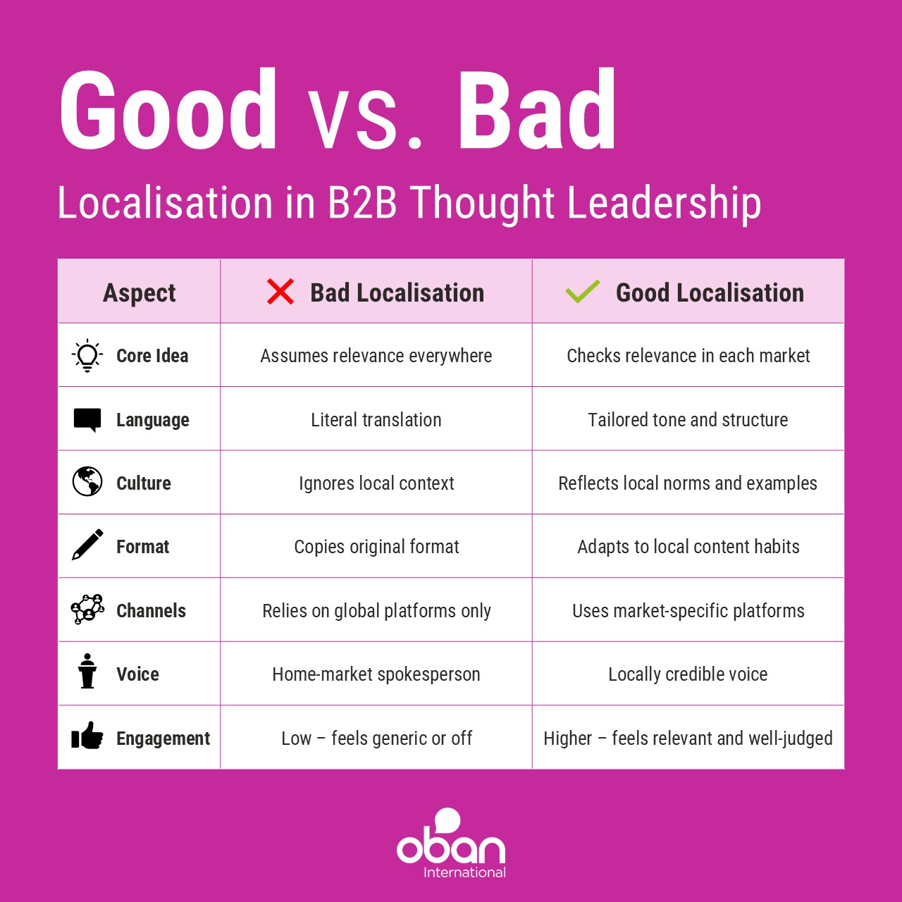 If you’re serious about localising B2B thought leadership – not just repurposing it – we can help. At Oban, we combine global strategy with local insight to make sure your content doesn’t just cross borders, but lands with impact. Drop us a line if you’d like to talk.